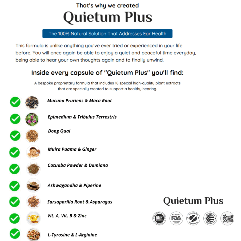 Quietum Plus is a natural supplement formulated to support hearing health — especially indicated for people who suffer from tinnitus, age-related hearing loss, or discomfort associated with the auditory system.