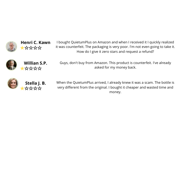 After conducting thorough research, our team found several complaints from customers who purchased QuietumPlus® from third-party websites such as Amazon, Walmart, or eBay. Many of these customers reported receiving counterfeit bottles with different ingredients — products that are not only ineffective but may also pose risks due to unknown formulations.